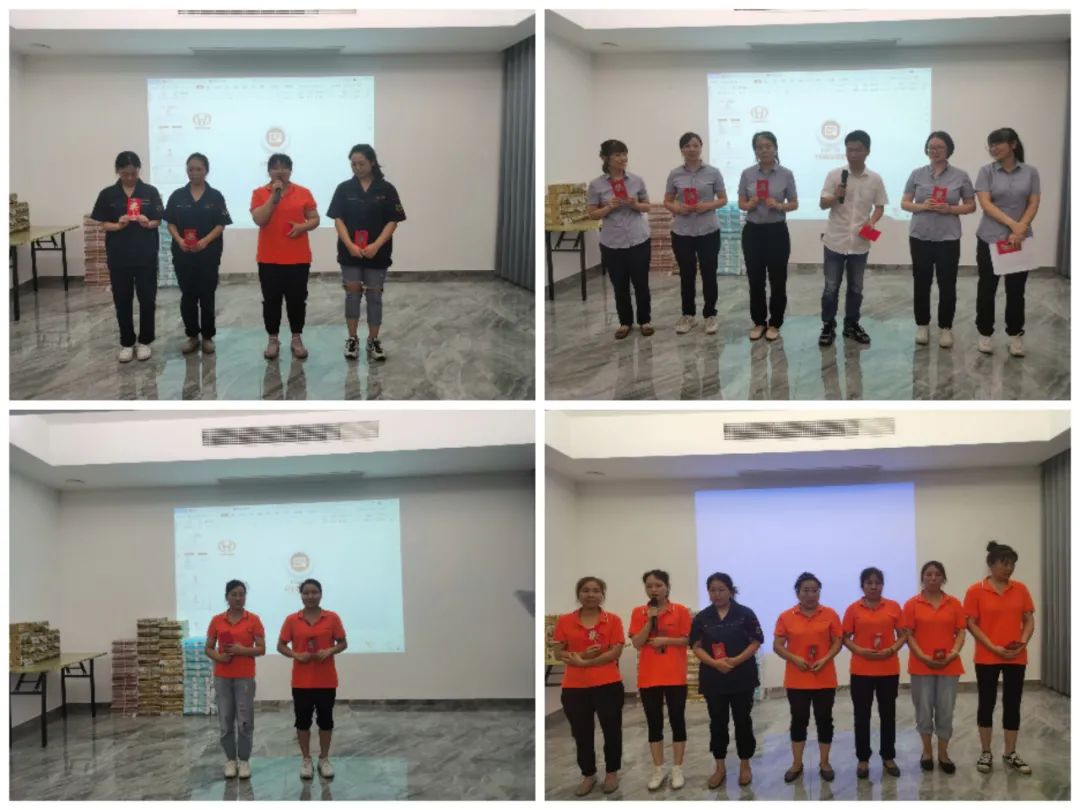 6月是收獲的季節(jié),在公司全體員工辛勤地付出及努力下,6月份銷售額同比增長(zhǎng)了40%!拼搏的是汗水,付出的是努力,收獲的是喜悅!公司一共有九個(gè)小組,按工分績(jī)效的排名首先確定了小組名次以及小組內(nèi)的名次和獎(jiǎng)金。員工按名次依次上臺(tái)從組長(zhǎng)那里領(lǐng)取了屬于自己的那份紅包榮譽(yù),并合影留念!